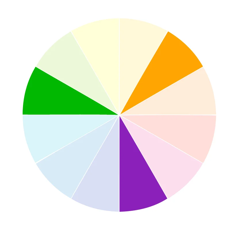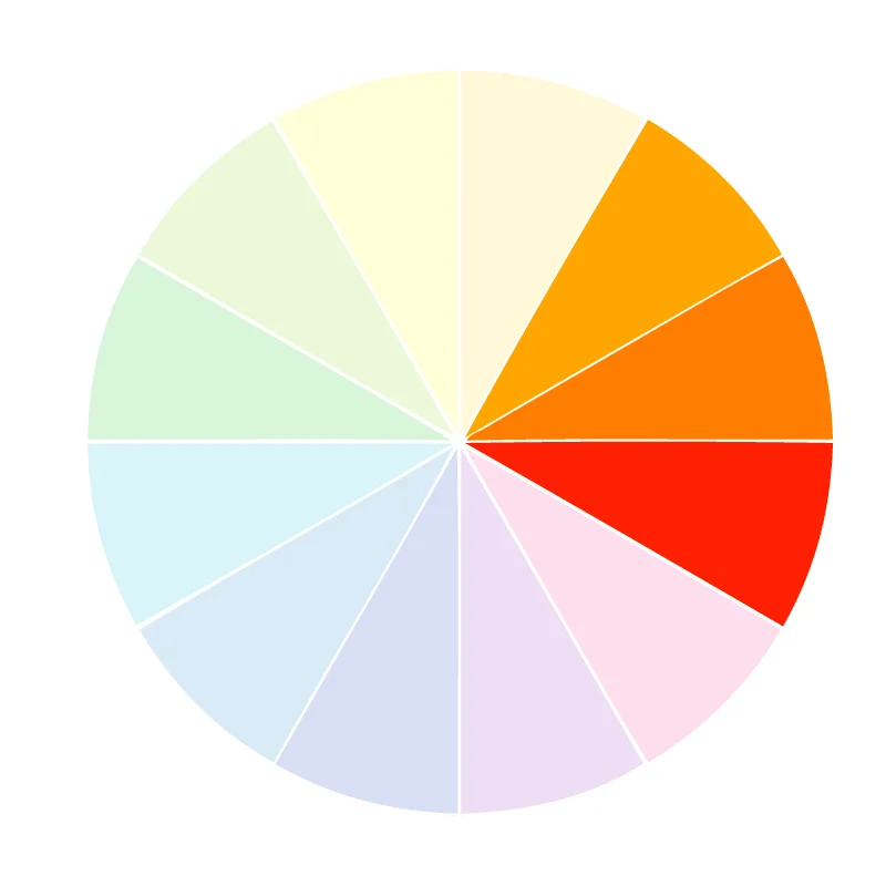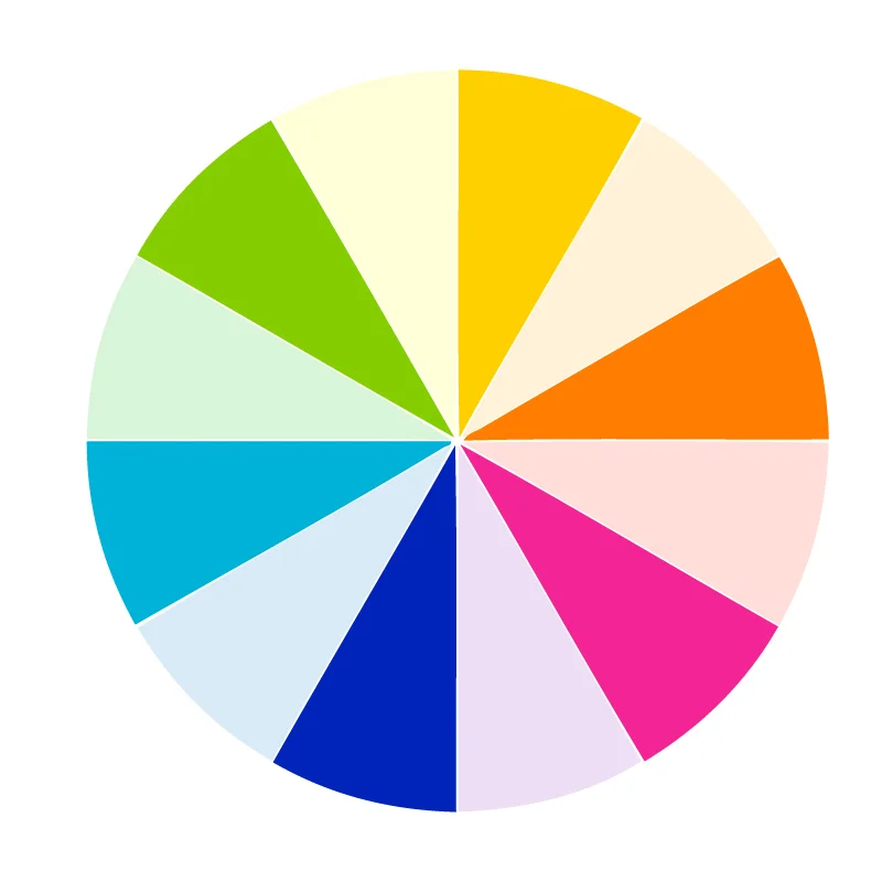 The basic color wheel is made up of 12 different colors that contain the full spectrum of colors that humans can see. You can use the color wheel to see color relationships and then base your color palette on those relationships.