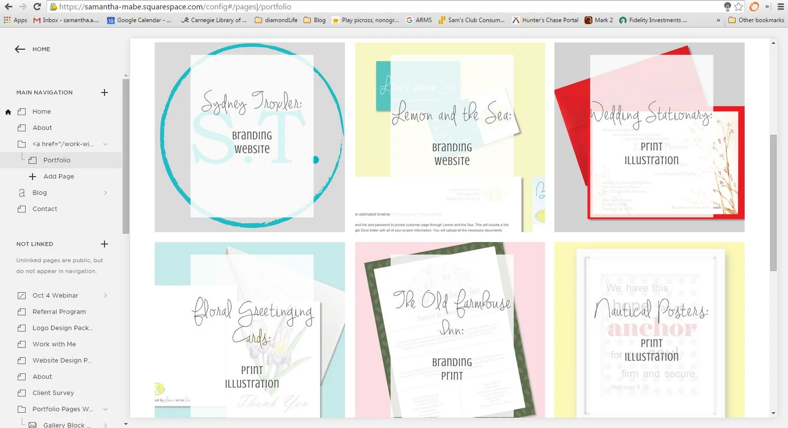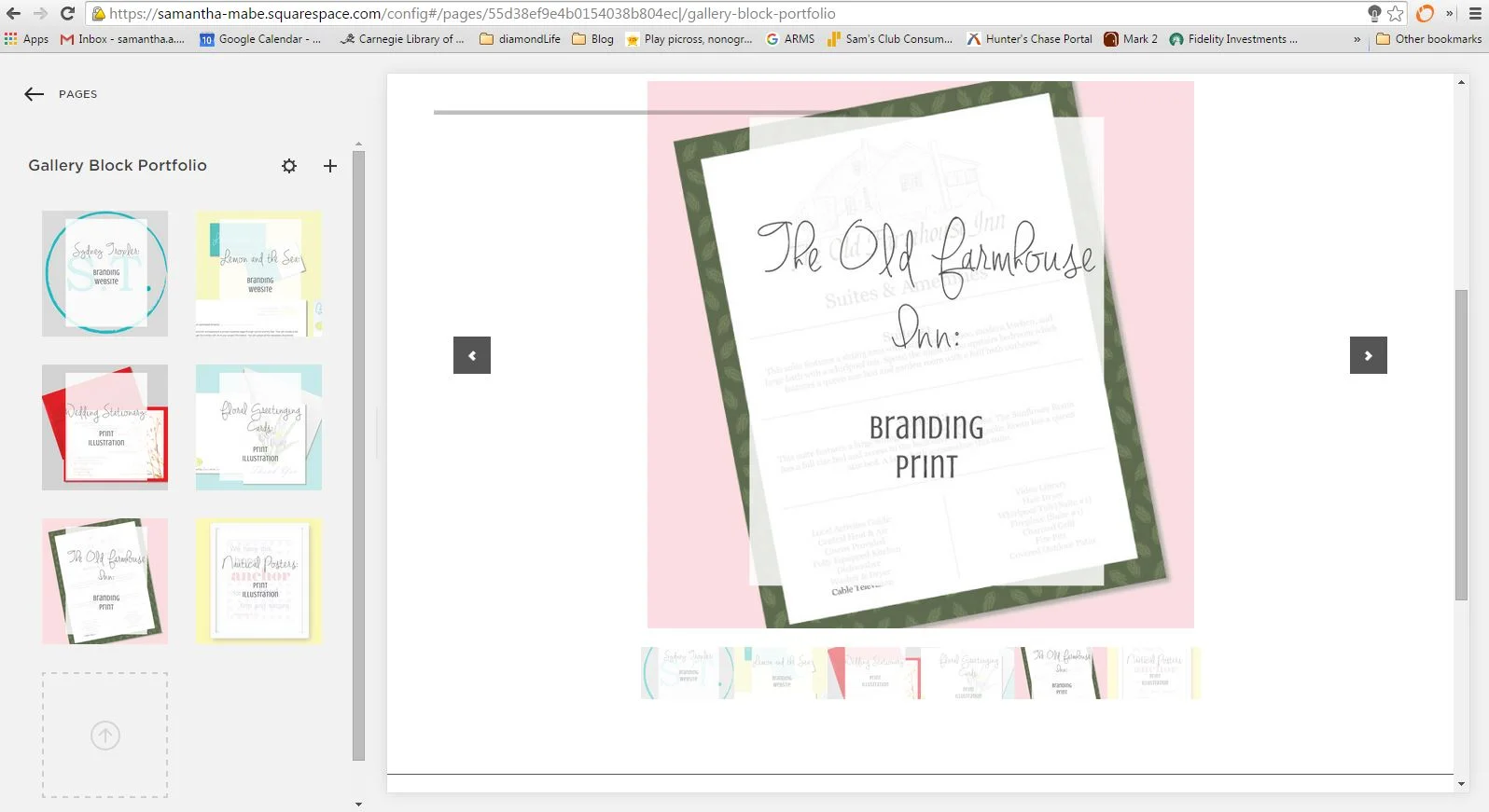 Now when you see my portfolio page,it looks great and to add a new project, I just have to add it to the Gallery Page and it automatically updates everywhere I have linked to this gallery. This way I don't have to go in and change every page each time I finish a new project! Yay for making things easy!